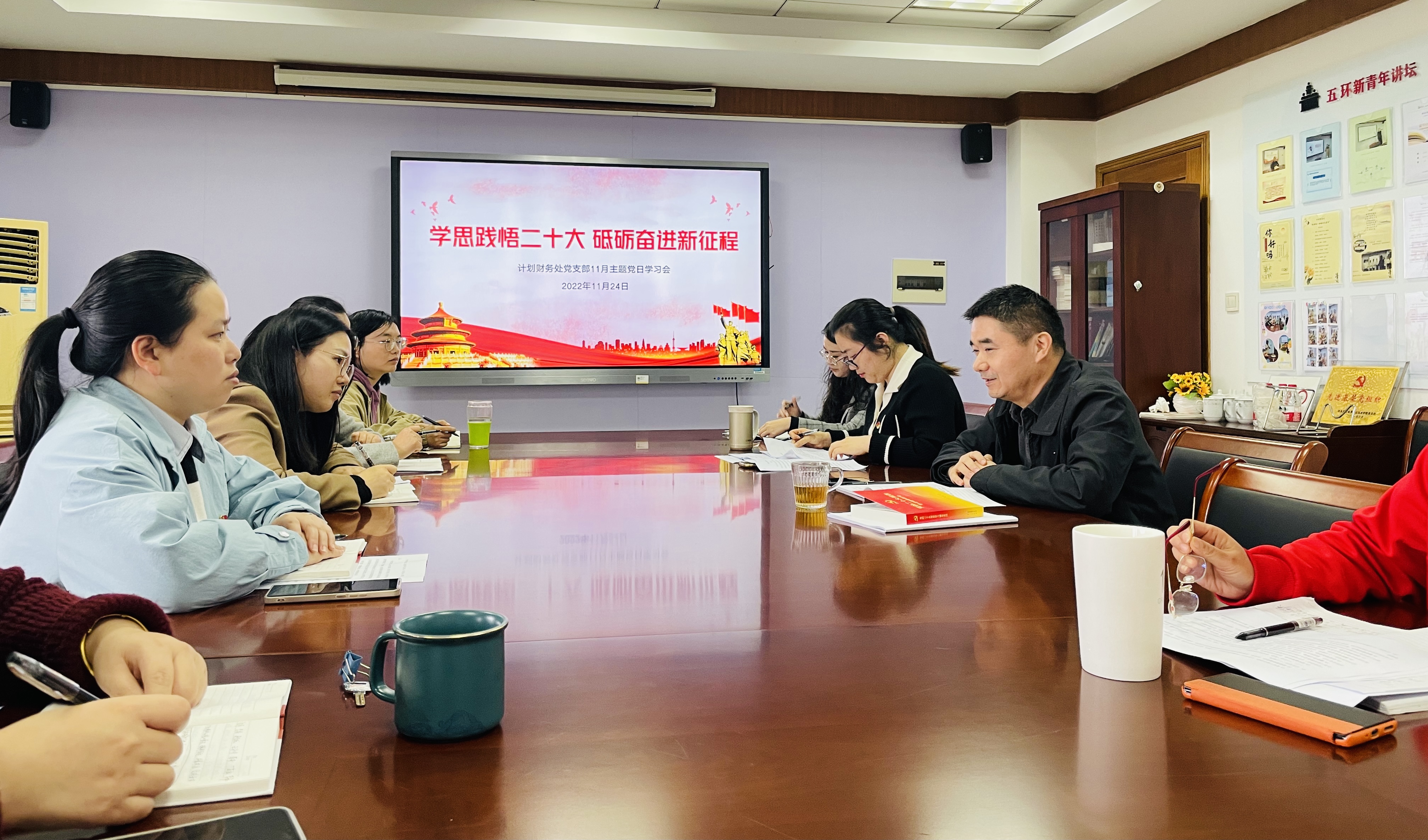 为进一步深入贯彻学习党的二十大精神,11月24日下午,计划财务处党支部组织召开了“学思践悟二十大,砥砺奋进新征程”主题党日活动暨党的二十大精神专题交流会,全处人员参加学习。